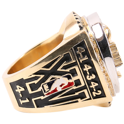The ring is two toned, with white gold representing the Lakers Sunday whites uniforms that honor legendary broadcaster Chick Hearn.