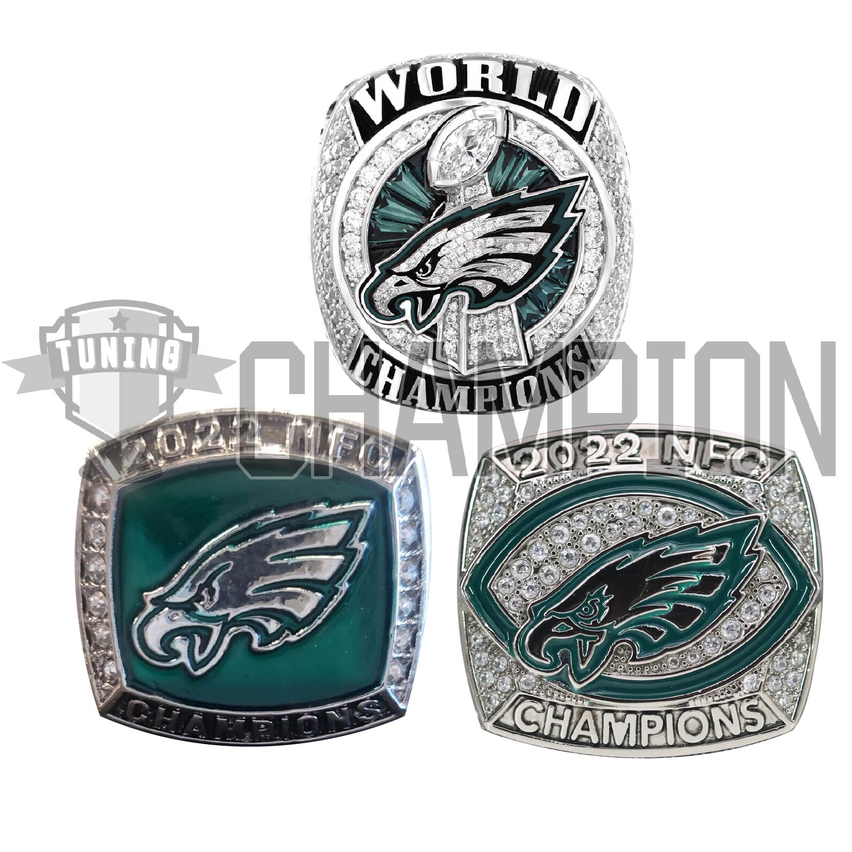 - Fans custom-2017 2018 2022 Philadelphia Eagles NFC Championship Ring 3-piece set