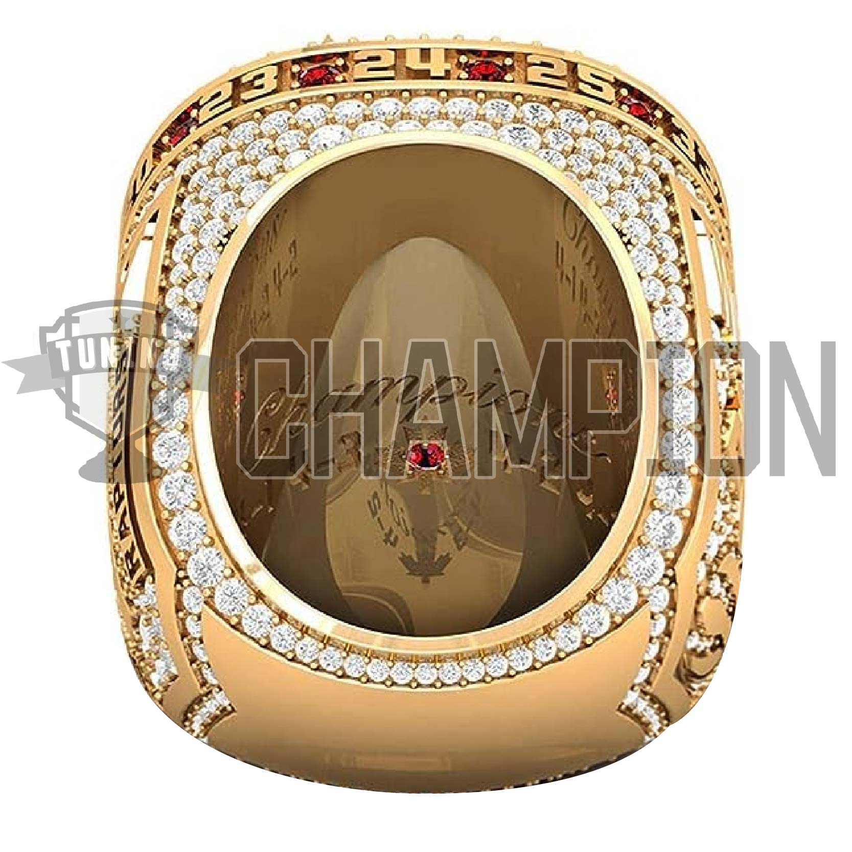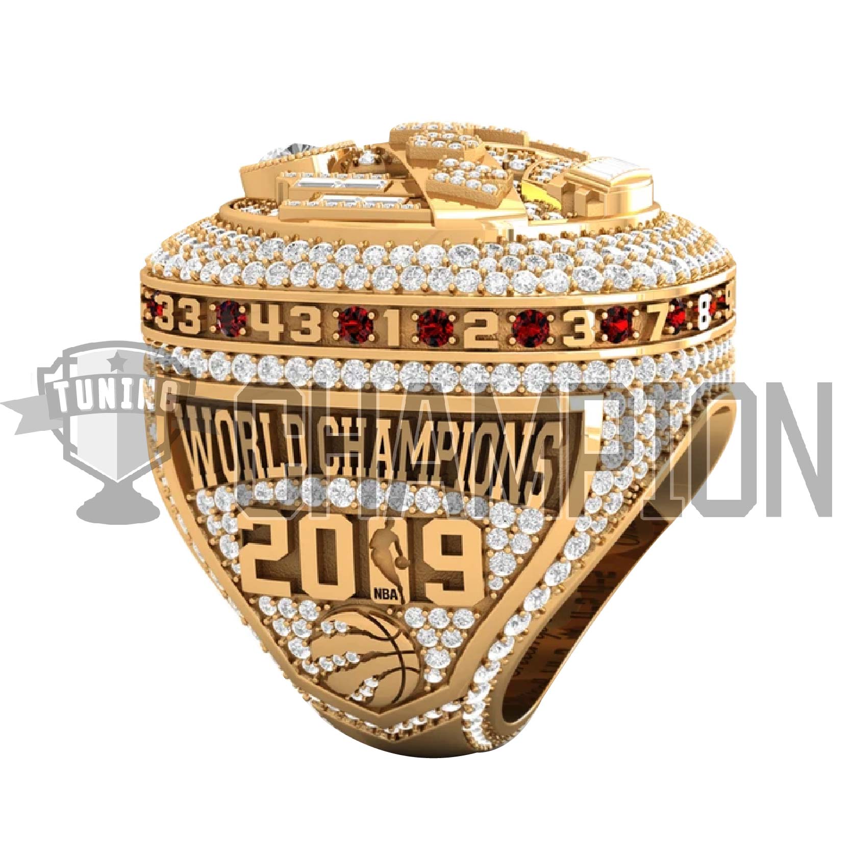 The ring’s face also depicts the Toronto skyline, the Scotiabank Arena, and the team’s chevron logo. Around the ring, there are 16 rubies and 16 jersey numbers, each representing a player on the championship-winning roster. The Raptor’s postseason series records are engraved inside the ring, along with a maple leaf with a ruby representing Canada at its center. Each ring is also personalized with each individual player’s name and number.