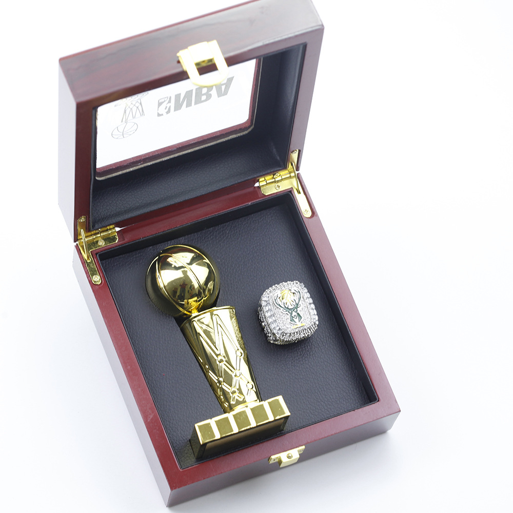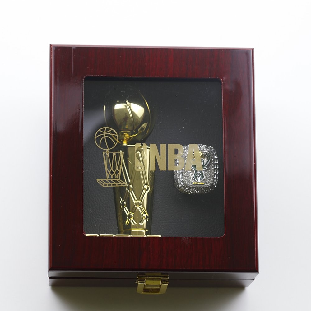 - Fans custom-2021 Milwaukee Bucks Championship Ring+Trophy+Wood Box
