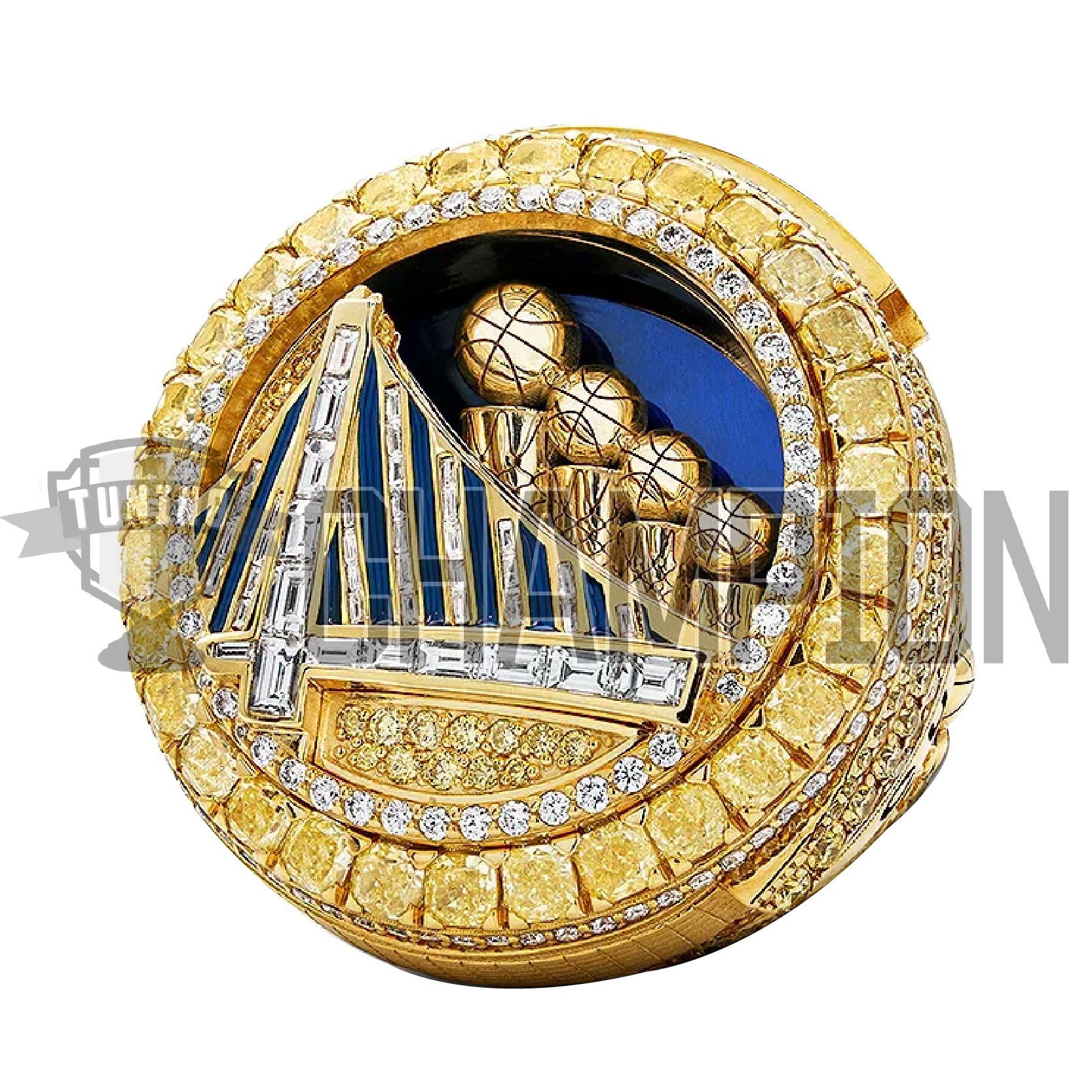 The rings feature approximately 16 carats of yellow and white diamonds set into yellow gold to represent the team’s 16 wins during the 2022 NBA Playoffs, marking the first time a Championship ring has been made up primarily of yellow diamonds. Seven carats of yellow cushion cut diamonds on the bezel represent the team’s seven championships, while 43 baguettes in the bridge represent Stephen Curry’s 43-point performance in Game 4 of the NBA Finals.