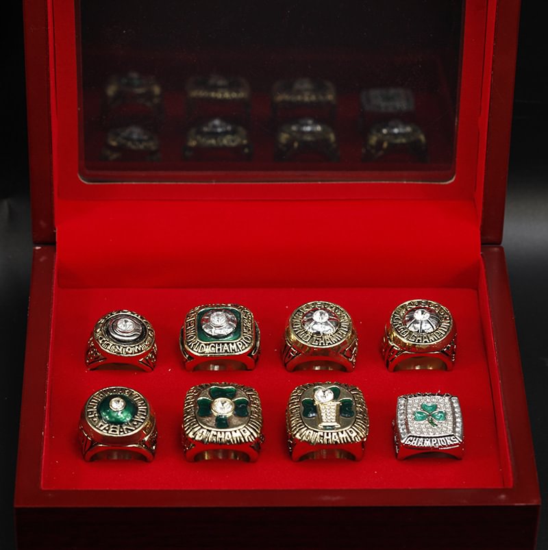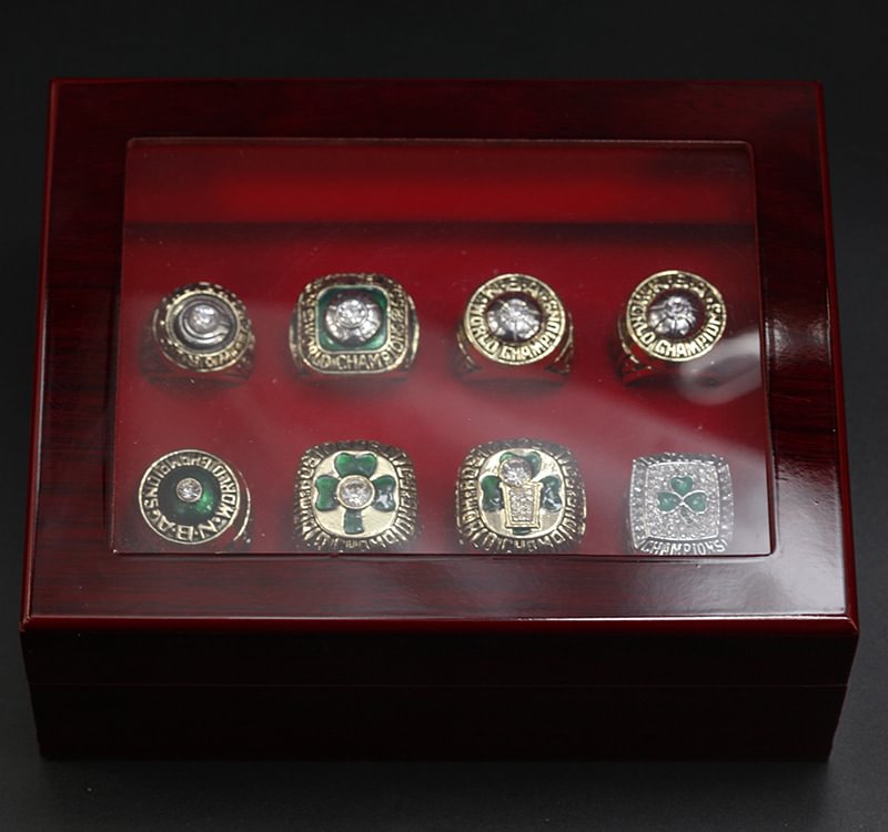 - Fans custom-NBA Basketball Boston Celtics 8 Championship Ring Set+Wood Box