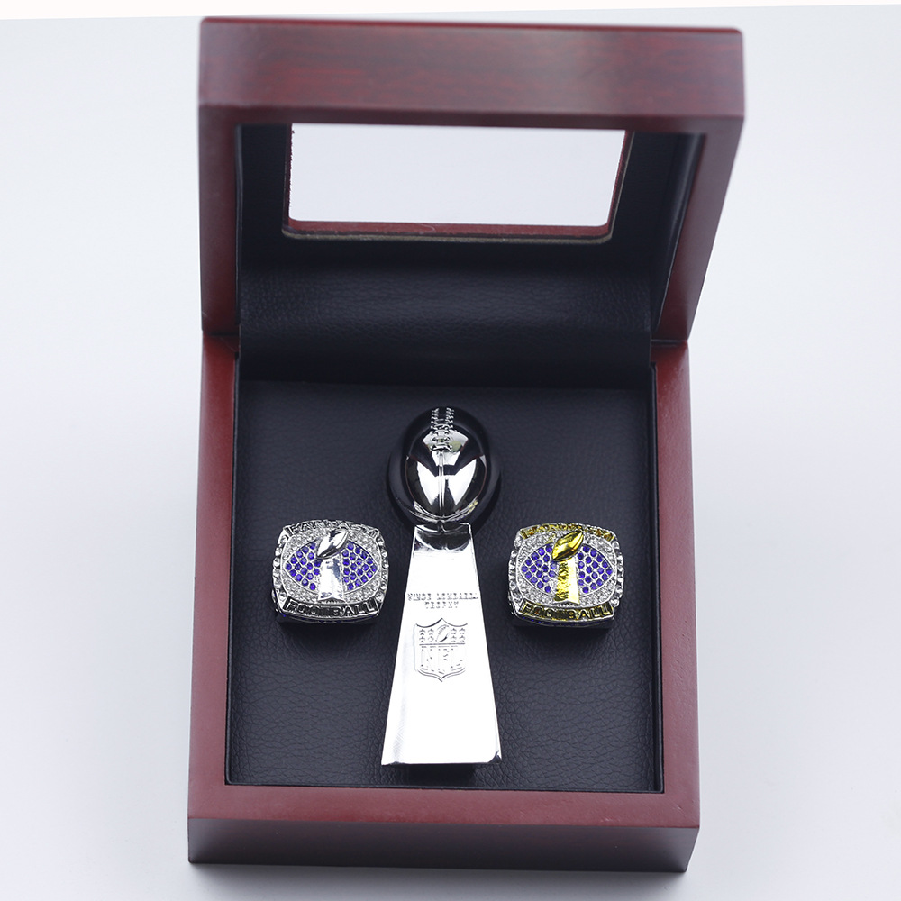 - Fans custom-NFL 2021 Championship Rings Silver Gold Two Rings + Trophy + Wood Box